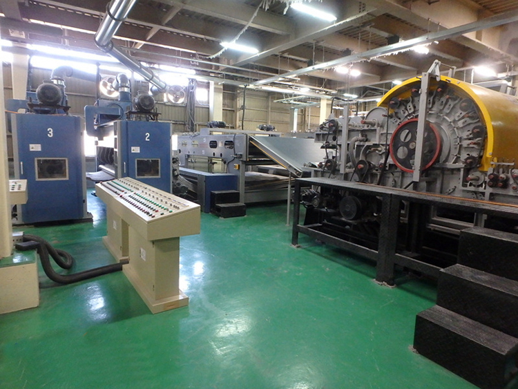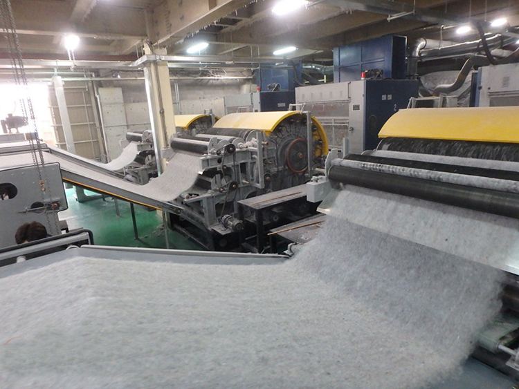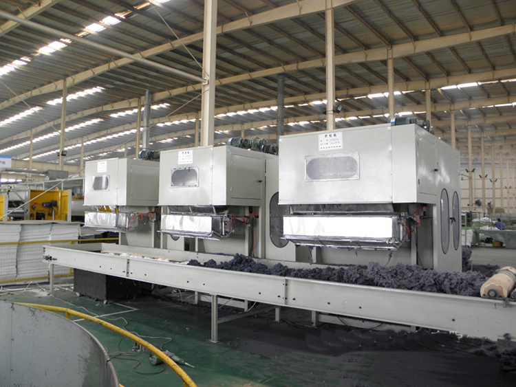 流程:開松機-棉箱-梳理機-鋪網機-預刺機-倒刺機-倒刺機-主刺機-成卷機;
